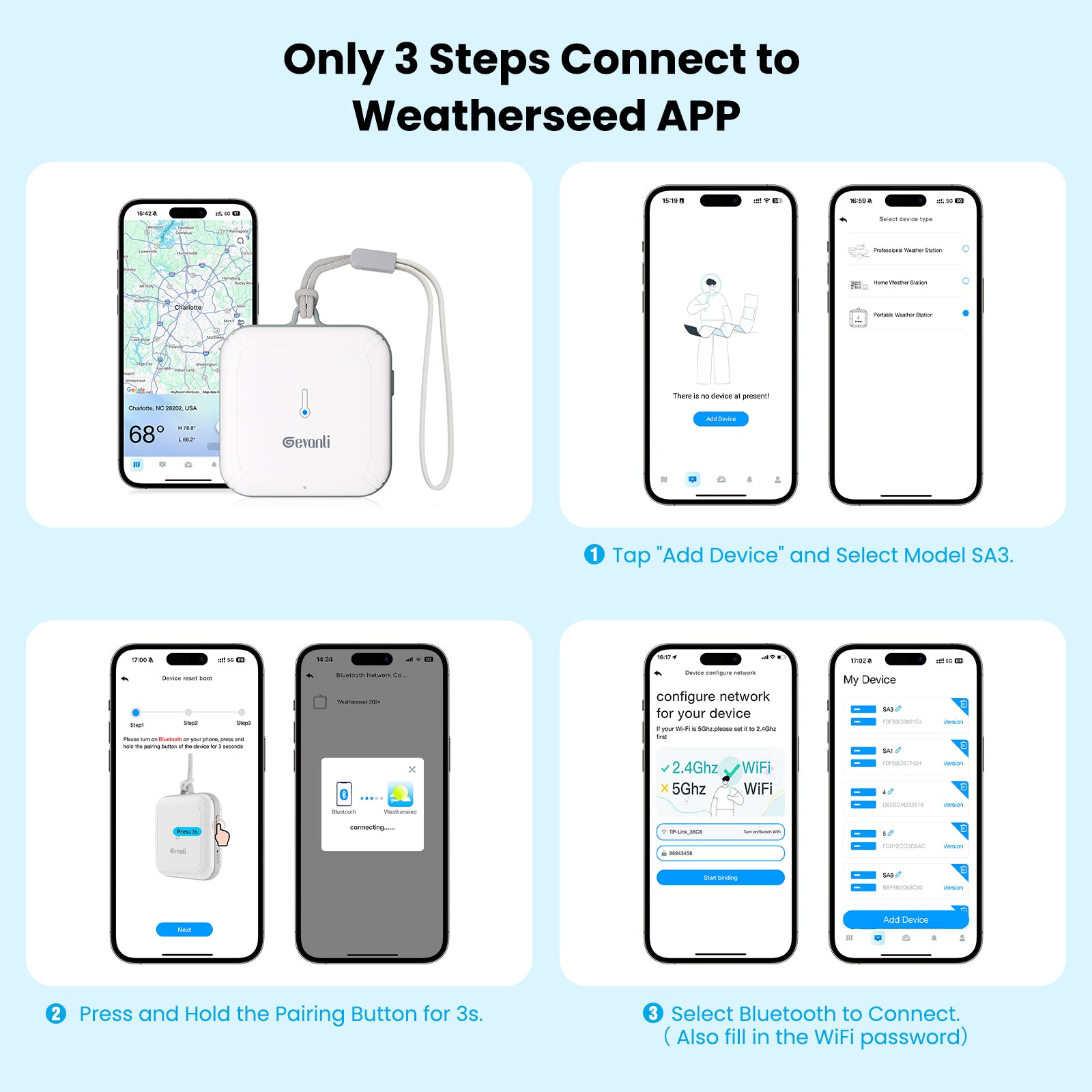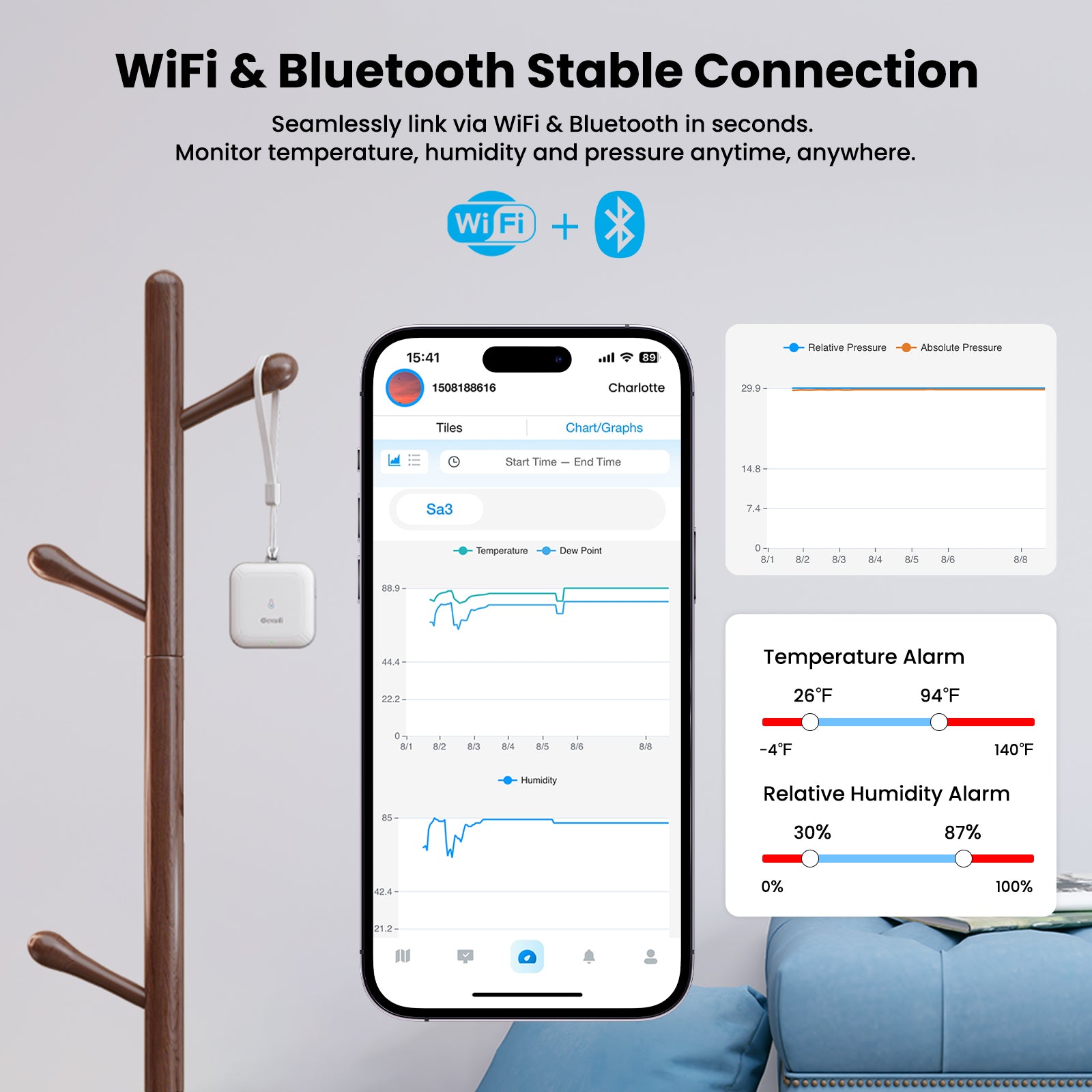 - 2 Years of Data Storage & Export: Effortlessly track temperature, humidity & pressure via WiFi/Bluetooth with Sainlogic SA3. The Weatherseed APP stores 2 years of environmental trends—export graphs for greenhouse, home, or wine celler analysis. Make climate decisions with precision, backed by historical insights