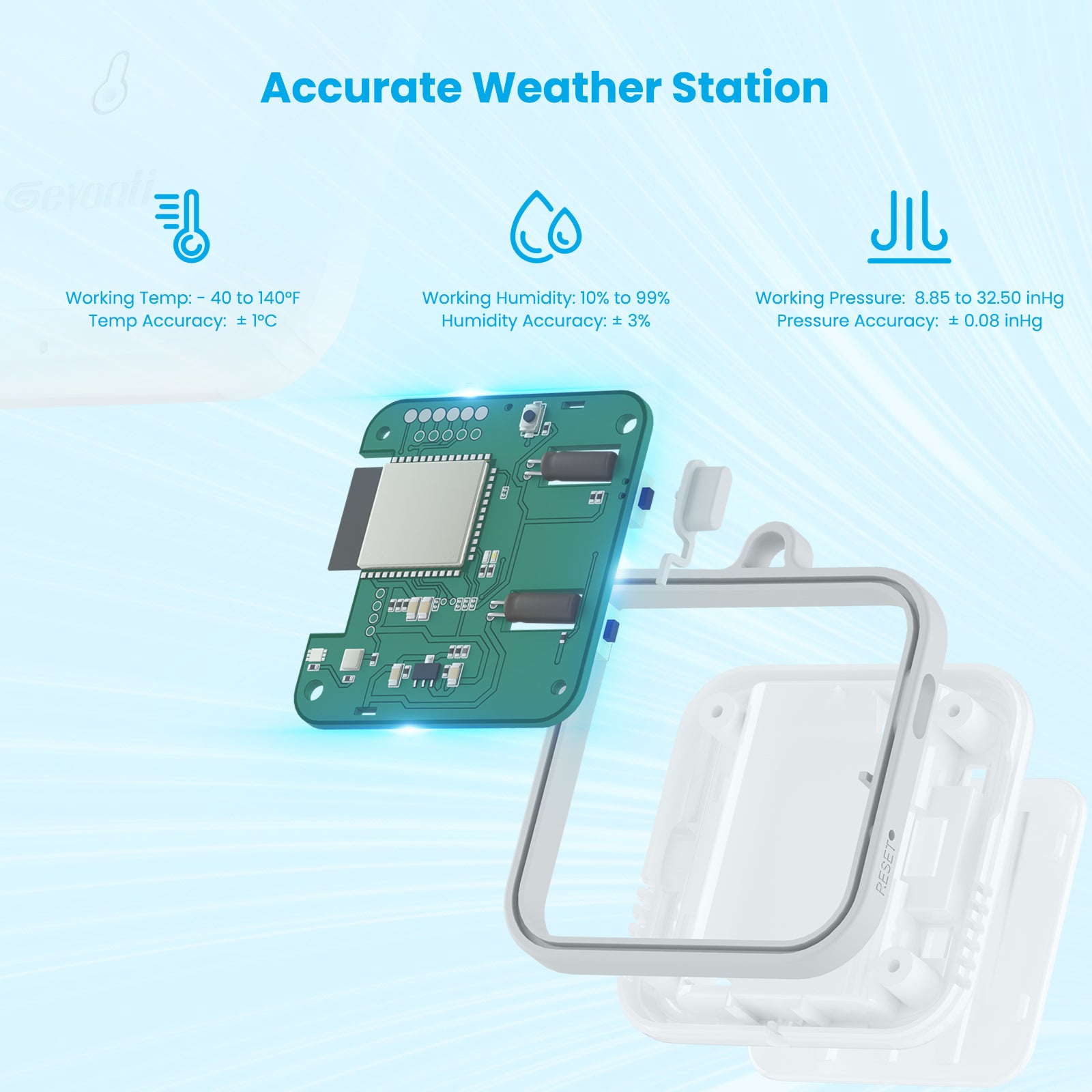 - Smart WiFi & Weatherseed APP Control: Monitor temperature, humidity, and barometric pressure in real-time from anywhere using the Weatherseed app. With stable WiFi and Bluetooth connectivity, you can easily track environmental changes in your greenhouse, home, or any room. The app also includes a unique feature to monitor lunar phases, perfect for gardening enthusiasts. (Only Supports 2.4G Wi-Fi)